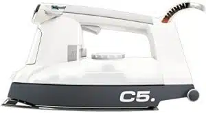 Il ferro da stiro Jagua C5 ha un design accattivante e un colpo di vapore che arriva a 90 gradi. La sua leggerezza consente una piena gestione, senza pesare sulle articolazioni, ed è dotato inoltre di sistema di decalcificazione integrato e funzione spray per colletti e aree specifiche.